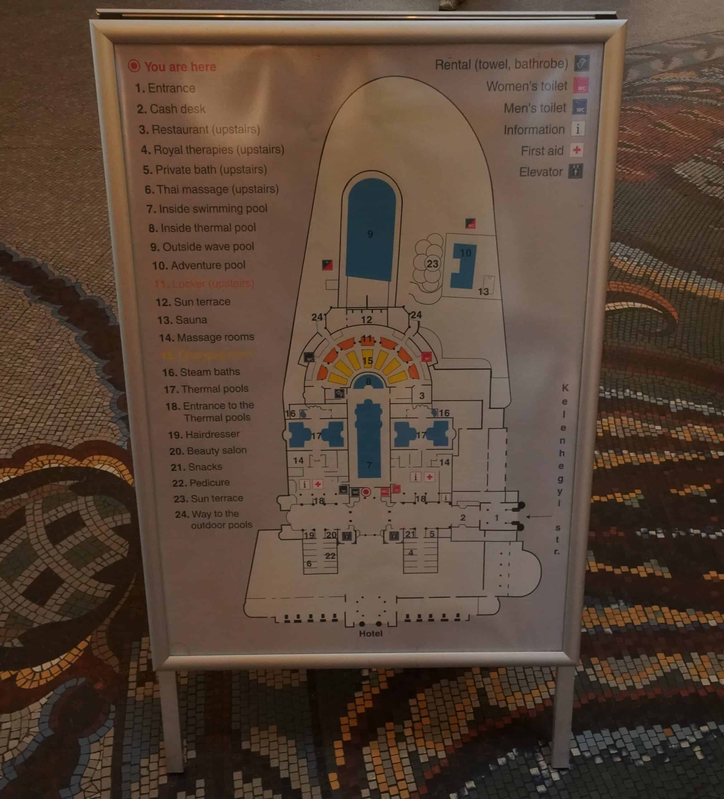 Once you are all set, it’s time for a dive into the healing waters. Check the map to make sure you tried all the wonders of the spa complex: you have altogether 12 pools and many other facilities to explore. If you need an insider’s trick to navigate, keep in mind that the layout of the pools is symmetric in the building: each indoor pool has its pair on the other side of the room.